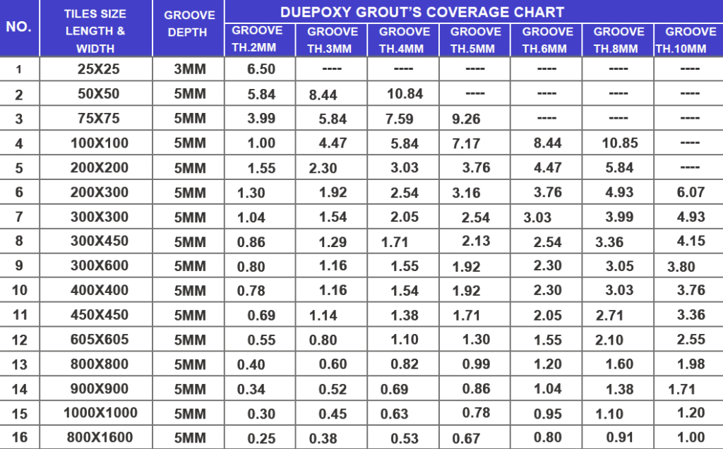 APOXY GROUT COVERAGE CHART