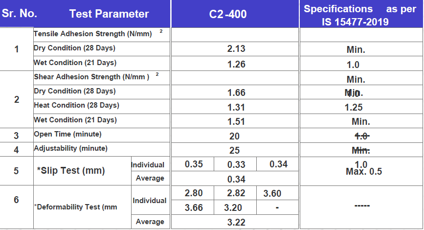 C2-400 is a Grey & white Cementitious polymer modified tiles adhesive for interior and exterior installation of Ceramic, Vitrified, Natural Stones, glass tiles, composite marble stones, Paver & bricks etc.